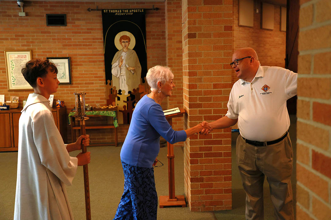 Host Greeters are the first people that welcome you as you enter St. Thomas for mass.
